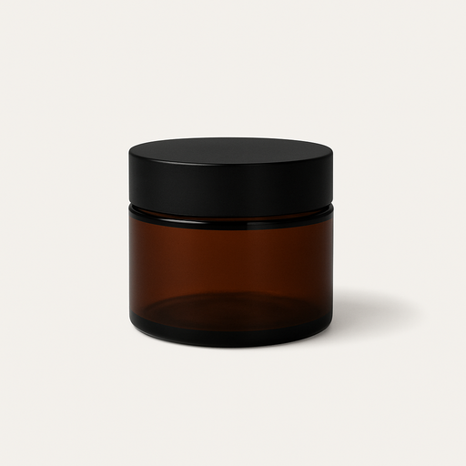 Consol Glass Cosmetic Jar Amber with Black Lid 50ml